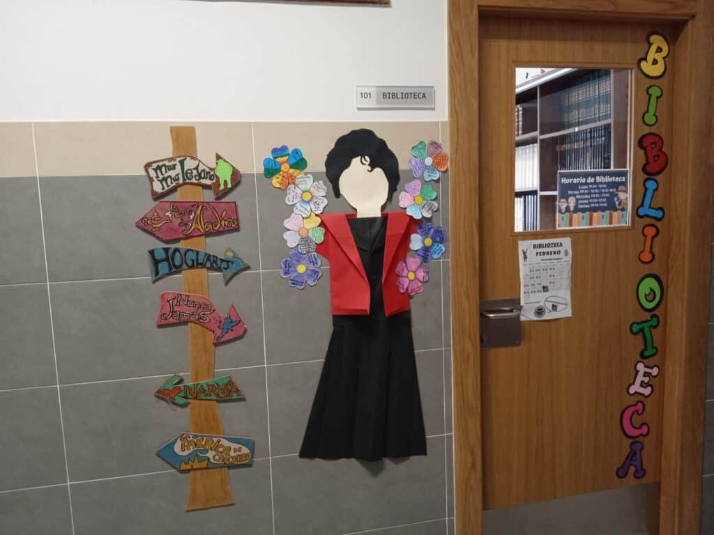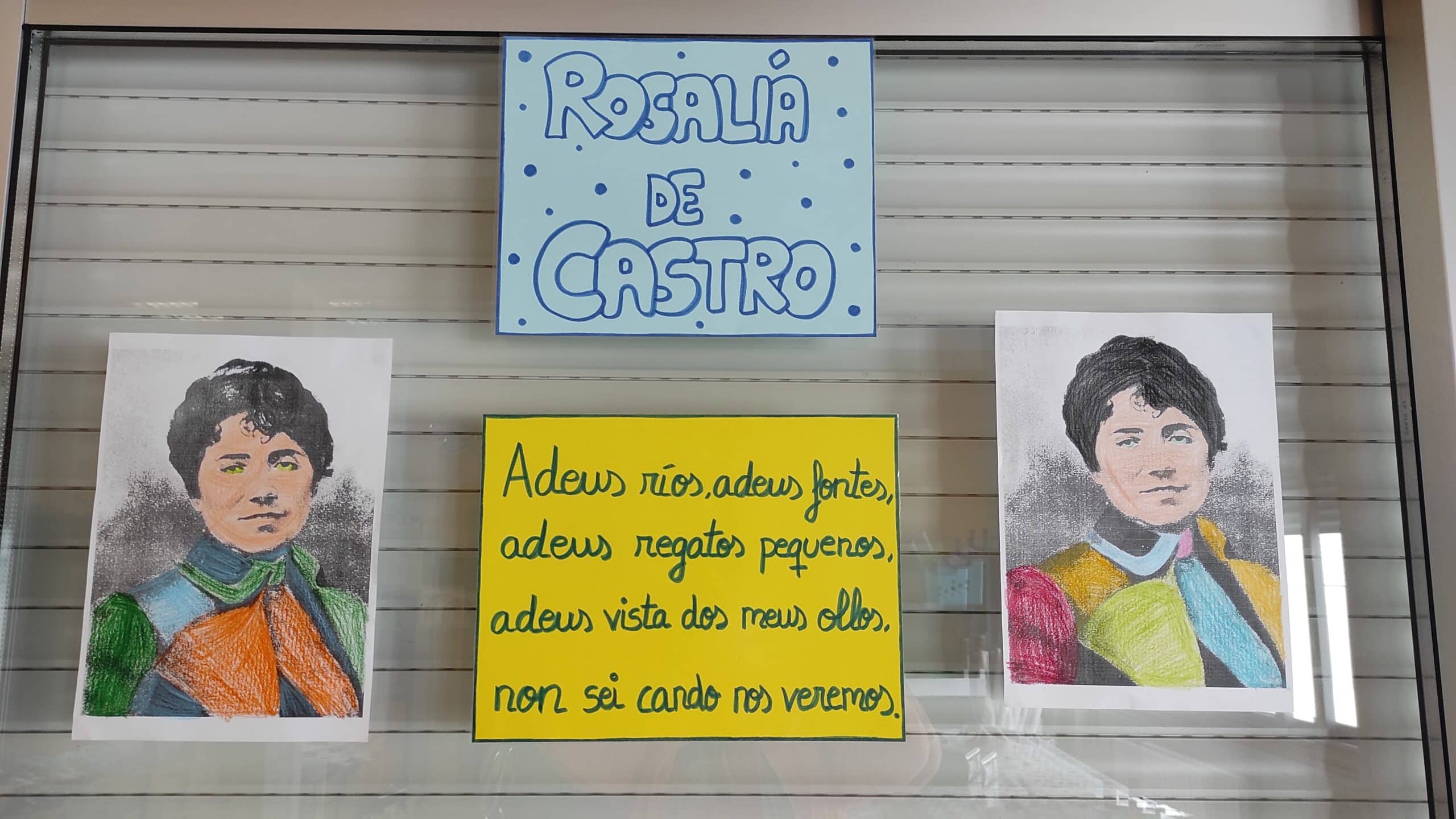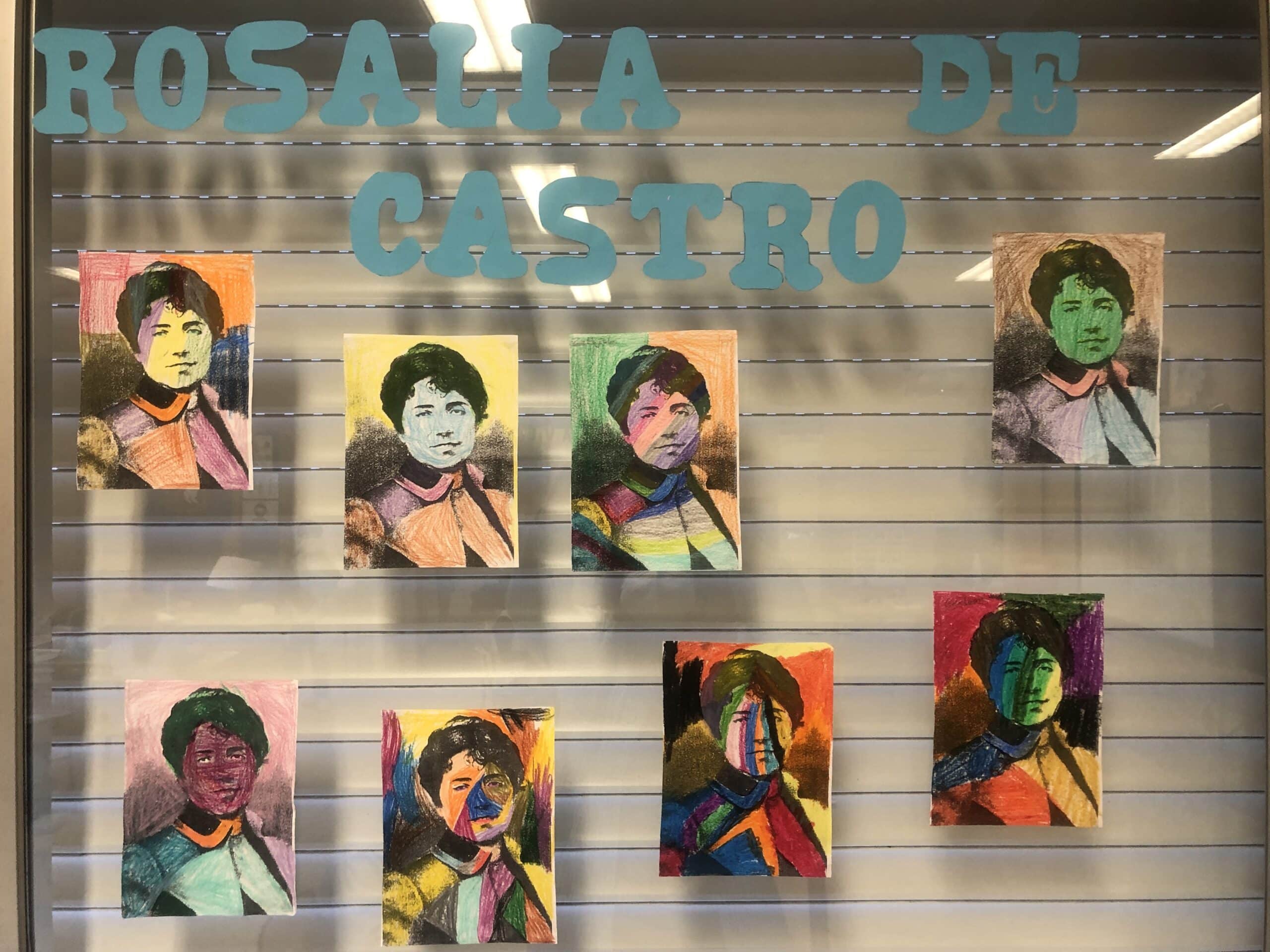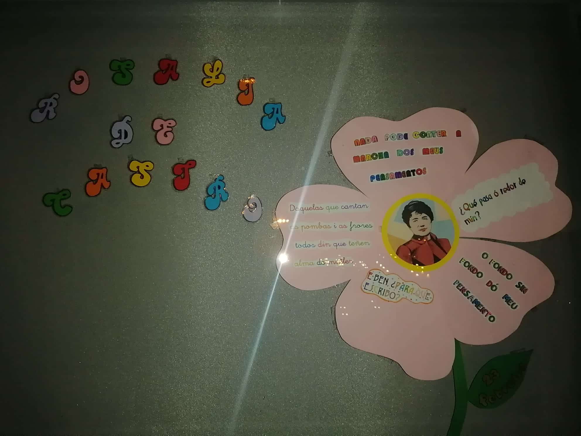 No colexio e na biblioteca fixemos varias actividades ao redor da súa figura, aprendémonos unha poesía, fixemos a súa caricatura e elaboramos un mural no que puxemos versos dos seus poemas. Ademais, decoramos a porta da biblioteca coa súa figura.