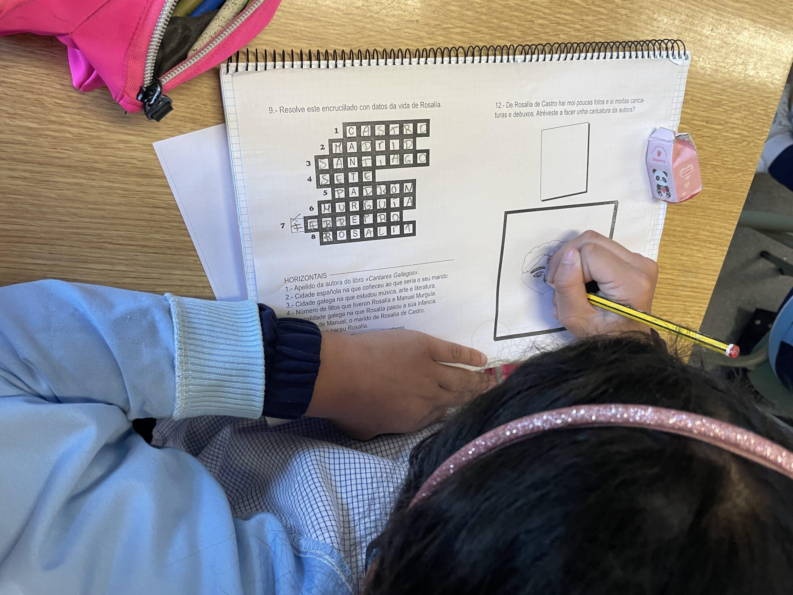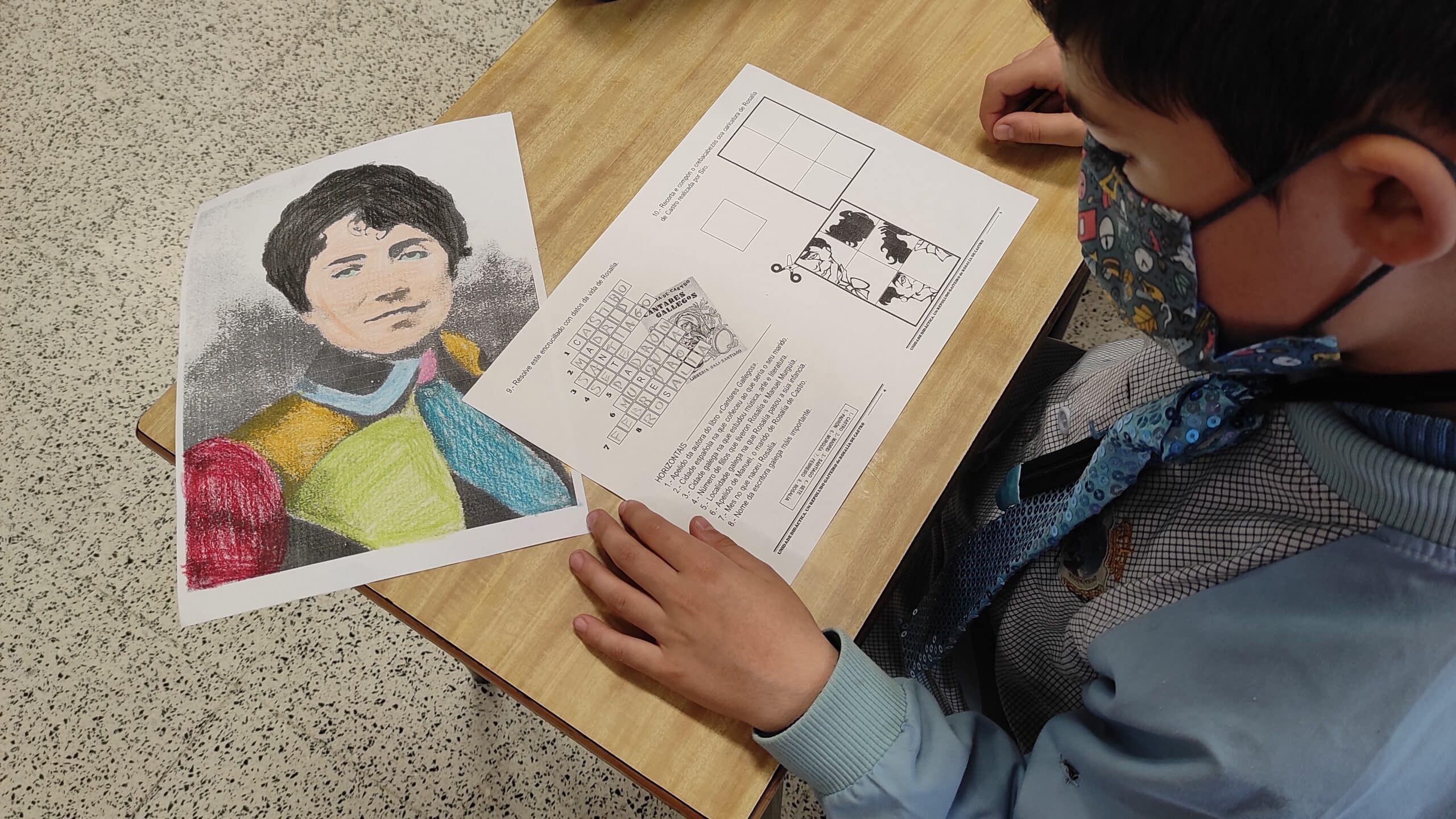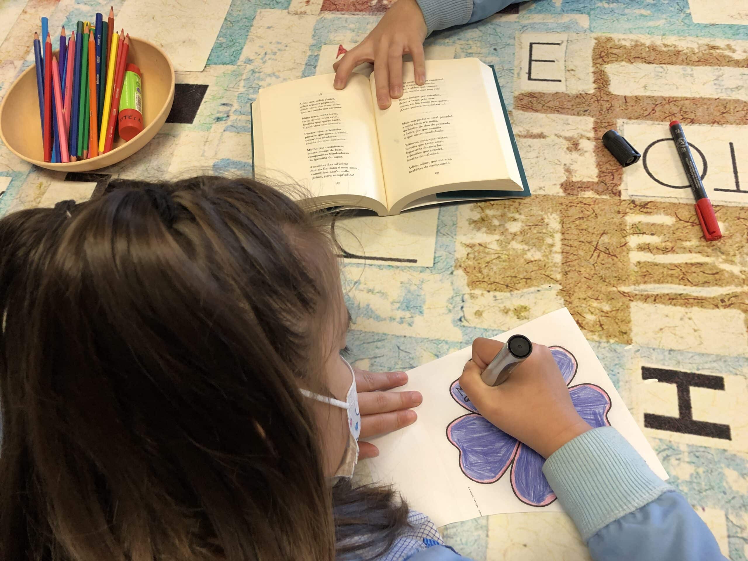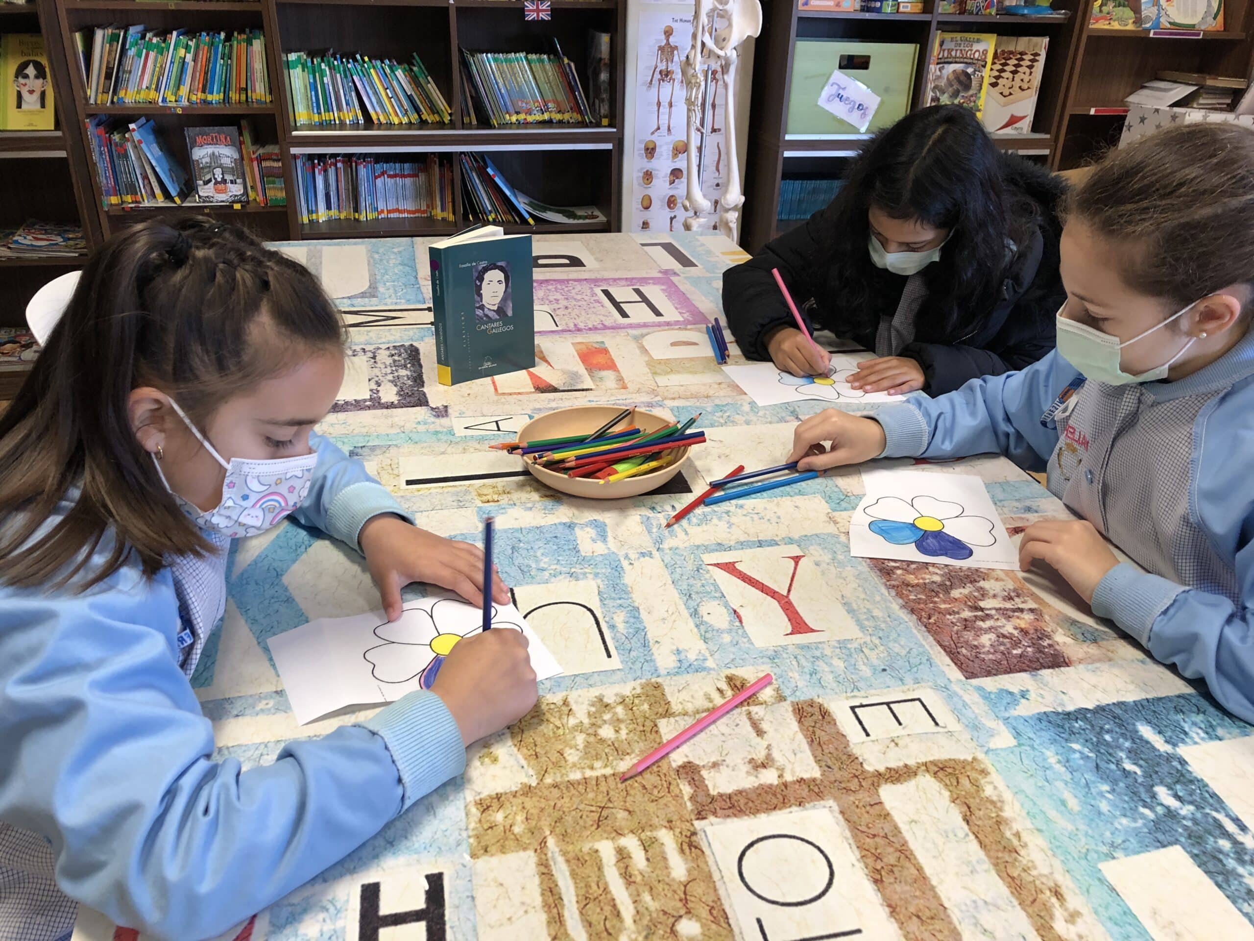 No colexio e na biblioteca fixemos varias actividades ao redor da súa figura, aprendémonos unha poesía, fixemos a súa caricatura e elaboramos un mural no que puxemos versos dos seus poemas. Ademais, decoramos a porta da biblioteca coa súa figura.